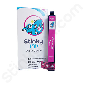 This high capacity compatible Epson 405XL magenta ink cartridge is a brand new cartridge made by a third party manufacturer. It can print up to 1100 pages, which is just as many pages as the original Epson version can do.