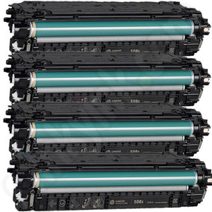 These Remanufactured Multipack of High Capacity 508X Toner Cartridges are genuine HP toner that have been used once, then cleaned, reconditioned and refilled with high quality toner. All working parts that experience any wear are replaced too. They’re fantastic toner that give you: