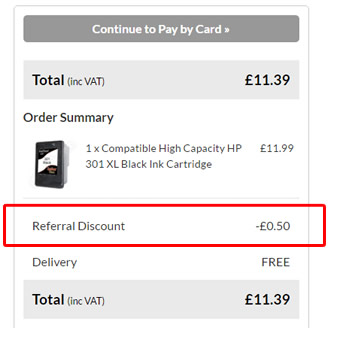 Your order total will also show the referral discount has been applied.