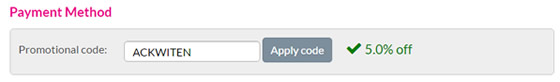 Once entered, the checkout will let you know it has been applied properly, ticks and and all. (Please don't use ACKWITEN as your code, that's Stinky-Matt's referral code. You don't want to make him rich, do you?)