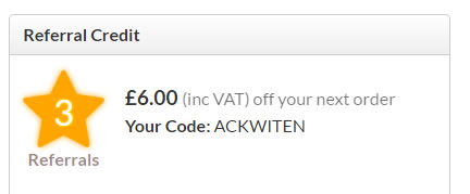 Before you read on please note, we cannot add referral codes to a completed order, so the person you refer needs to remember to enter the code before placing their order. Sorry!